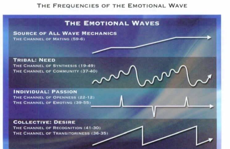 Th 41-30 wave moves up and down quickly, if it is a person’s only emotional channel then they can experience sharp sudden spikes in feeling/emotion along with sudden plummets. Even if a person has multiple emotional channels (like me, see below) they can still have those high highs and low lows that can come out of nowhere.
